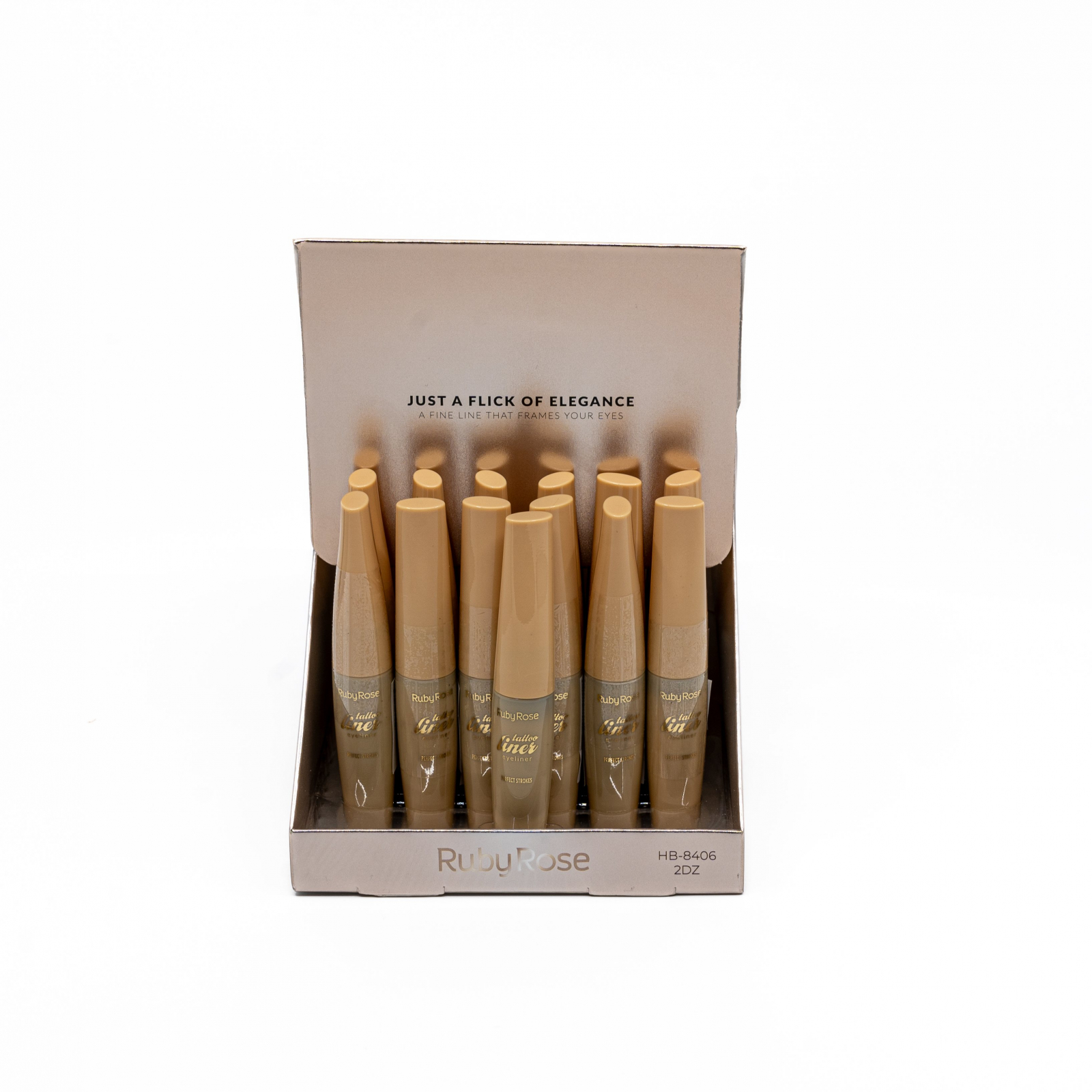 Ruby Rose Tattoo Liner este un eyeliner lichid conceput pentru contururi impecabile si rezistenta indelungata. Pensula ultra-subtire permite trasarea liniilor fine sau dramatice, iar formula intens pigmentata se usuca rapid, ramanand intacta fara sa se transfere sau sa se cojeasca. Recipientul ergonomic ofera control excelent, transformand machiajul ochilor intr-o operatiune rapida si precisa.